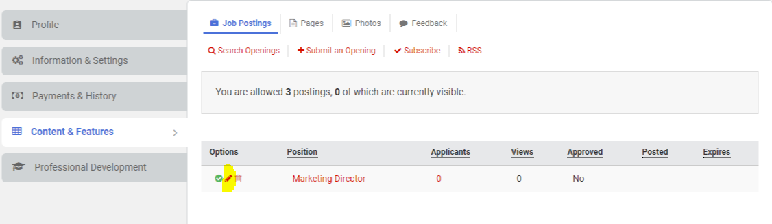 - Your paid invoice includes a truncated link to a web page where you can manage a career posting. Click on the link.
