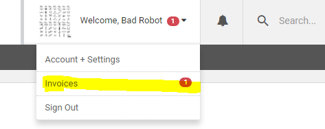 - Under the “Welcome” sign, select “Invoices” from the drop down menu.