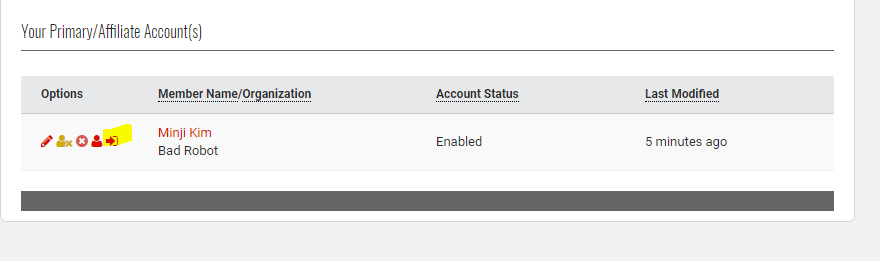 You may always view and manage your Primary/Affiliate accounts through your Organization Member account. To view and manage your Primary/Affiliate accounts, see "How do I add a Primary/Affiliate Member account?".